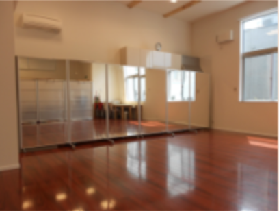 特殊な設計をされたスタジオで、天井が高く開放感があります。下は、木の床になっていてアットホームな空間を演出しています。ダンス仕様の鏡もあるので、ストレッチや体操の動きを確認できます。