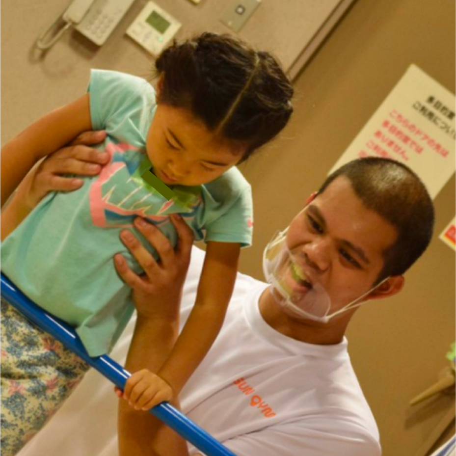 親子で参加できる楽しいプログラムを用意しています。バランスをとったり、走ったり、ジャンプしたりと全身を使う運動をたくさん行います。英語で挨拶をしたり、英語の歌に合わせて踊ったりします。親御さんが英語に苦手意識があっても、全く問題ありません。とにかく運動して、一緒に体を動かしましょう!親子での協力ミッションもあるので、絆が深まること間違いなしです!