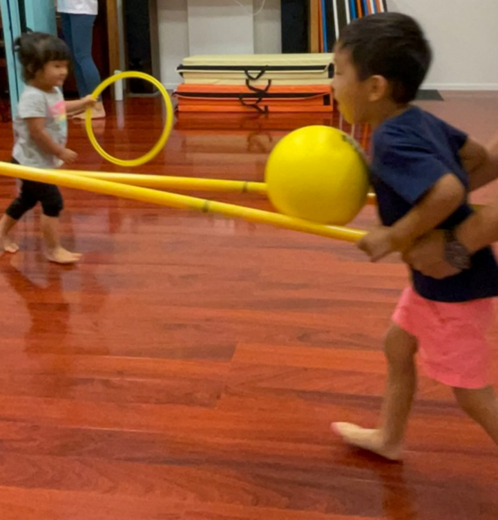 バランスストーンやいろんなポーズを取り入れた遊びを行うことで、バランス力がつきます。小さい子でも体の使い方を意識できるような英語のアクティビティを行います。